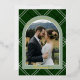 Elegant Green Tartan Plaid First Christmas Married Photo Card with Gold Foil, Merry and Married Holiday Card, Classic Preppy Newlywed Christmas Card