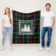 Green Tartan Plaid & White Pine Tree Silhouette Fleece Blanket