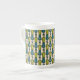 A stylish Bone China Coffee Mug, with a decorative 'tribal' pattern in Green and Teal, outlined in Black, on a Cream Background. Part of the Posh & Painterly "Jungle Drums" collection.