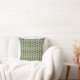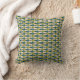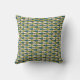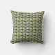 A stylish Throw Pillow or Cushion, with a decorative 'tribal' pattern in Green and Teal, outlined in Black, on a Cream Background. Part of the Posh & Painterly "Jungle Drums" collection.