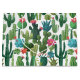 This is a pattern of decorative green and teal flowering cacti on a white background.