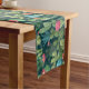 Green Teal Blooming Cacti Pattern Short Table Runner