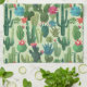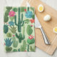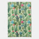 Green Teal Blooming Cacti Pattern Tea Towel