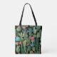 This is a pattern of decorative green and teal flowering cacti on a black background.