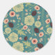 Green Teal Pink Floral Toss Pattern Classic Round Sticker