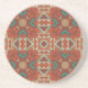 Green Teal Rust Orange Beige Brown Red Tribal Art Coaster