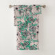 Green Teal White Graphic Flowers Pattern Bath Towel Set