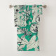 Green Teal White Graphic Flowers Pattern Bath Towel Set