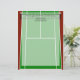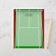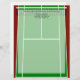 Graphic tennis court illustration features court layout in perspective view with black net, green field and white lines with dark red "out" areas. Great for a tennis or sports and fitness business sales, marketing, motivational, or health and wellness based businesses. Available as a complete personal or business set including event or tournament invitations, business cards, stickers, labels and more!