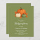 A sage green, olive green background. Decorated with retro looking pumpkins. With the text: Thanksgiving Dinner written with a modern hand lettered style script. Personalise and add the details.
