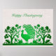 Beautiful Green Thanksgiving Turkey Floral Poster