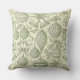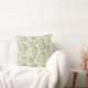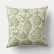 A vintage-style green toile seamless pattern throw pillow featuring intricately illustrated Christmas bells, holly branches, pine sprigs, ribbons, and ornaments on a soft cream background. The elegant monochrome linework evokes a classic holiday charm, reminiscent of Victorian Christmas decor. This pattern blends timeless elegance with nostalgic seasonal spirit.