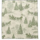 A classic green toile seamless pattern shower curtain featuring vintage sleigh rides through a snowy forest. This elegant design depicts horse-drawn carriages, evergreen trees, and winter landscapes rendered in fine line art on a soft cream background. This pattern evokes timeless nostalgia and countryside charm.