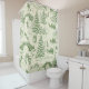 A classic green toile seamless pattern shower curtain featuring vintage sleigh rides through a snowy forest. This elegant design depicts horse-drawn carriages, evergreen trees, and winter landscapes rendered in fine line art on a soft cream background. This pattern evokes timeless nostalgia and countryside charm.