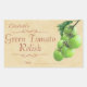 A vintage style label for ketchup, sauce or relishes with an illustration of a bunch of green vine tomatoes with leaves, made from an original digital painting, with brown coloured scrolls and text. The date can be left for writing the date, or change the dotted text to the year you require.