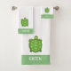 Green tortoise on white and lime green Towel Set. Elegant home decor towels.