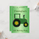 Birthday party invitation tractor design. You can customise this birthday party invite with your party details then have it printed or download it. Should you require any help with customising then contact us through the link on this page. Green tractor design personalised birthday party invitation that you can have printed or downloaded