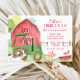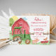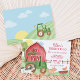 Farm Barnyard Animals and Green Tractor Birthday Party Invitation featuring a red barn, green tractor and adorable watercolor barnyard animals such as a cow, pig, and rooster in a wagon. This invitation can be personalized for boy or girl any age or perfect for a 3rd Birthday "Three-I-E-I-O". Your friends will want to plow on over for some fun! Farm scene design continues on the back where you can add the childs age to the flag on the tractor.