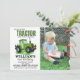 Get your little farmer ready to celebrate with this adorable tractor theme party invitation! Featuring a bright green tractor image, this invitation is perfect for any child who loves tractors, farms, or anything with wheels.