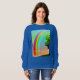 Sweatshirt in a green, watercolor tree, against a blue sky and a vividly coloured rainbow