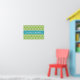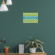 Trendy, modern, bold Moroccan tile inspired lattice trellis pattern in green and white with a bright blue name template.