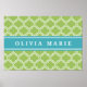Green Trellis Vibrant Blue Name Template Poster