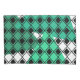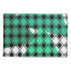 This pillowcase has a mid-century modern design of solid black diamonds inside black diamond outlines with triangles in shades of seafoam green under them, all on a field of white.
