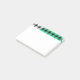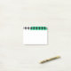 This Post-It notepad has a mid-century modern design of solid black diamonds inside black diamond outlines with triangles in shades of seafoam green under them, all on a field of white.
