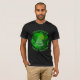Green tropical family vacation graphic t-shirt featuring cool tropical leaves, sun, and sailboat. The graphic is on the front of the shirt. Customise with your name or desired text. Use the template to create your own graphic t-shirt.