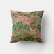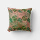 Pretty green tropical leaves on iridescent terracotta pink decorator pillow.