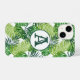 Colourful watercolor green tropical monstera, palms and fern leaves on a white background with monogram A design.