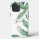 Green Tropical Leaves Monogram Name Case-Mate iPhone Case