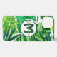 Colourful watercolor green tropical monstera, banana, palms and fern leaves on a white background with monogram name design.