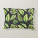 Green Tropical Leaves Pattern Black Botanical Decorative Cushion