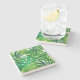 Green tropical leaves stone coaster
