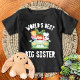 Big sister kids and baby shirts has cute cartoon animal design with big sister quote. This design is available in baby or toddler bodysuits, baby shirts, and kid's t-shirts. Click on the tab that you wish for this design to be printed on and choose the size. Please note that you can also add the child's name or any other text, by simply clicking the 'customise further' button. This feature is optional depending on your liking.