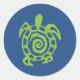 Anyone who loves turtles will enjoy having our graphic Native American green turtle design in their home or office. Our original design features the cute yellow, green  turtle with a swirl print shell in a fun pattern on blue. Custom designs available.