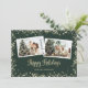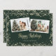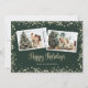 Green photo holiday card featuring a beautiful festive script font, stars and twinkle lights on a plain green background. The background can be changed to any colour. Easily personalise this green photo holiday card with your photos and the family name.