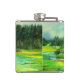 green valley painting Watercolor Hip Flask