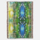 A quality printed throw has its advantages. This is a much finer weave throw than its loopier cousins, and though lighter, it is worth the investment for custom room accessorizing. The back is much prettier than the typical brown, and the fringe on the long sides very vivid, the selvage nicely done. Before photographing, I washed the throw in cold water, delicate, with a thicker woven throw the same size. On tumble dry low, this throw was dry in half the time as the other. This is a very practical quality if you use throws for furniture covers or to wrap up in frequently. The sleekness of the fabric makes it a great layer for accenting or protecting without the feeling of sitting on too much stuff. Perfect for napping or when you feel a light chill coming on. The color printing is beautiful and on this fabric, matched the design and color of my Photoshop image. This is an advantage for blending room fabrics and colors. The fringe on the short sides prints the colors from the design image and therefore varies from the side fringe. I streaked a white fractal line through the plaid pattern to give the illusion of weaving. This printed as crisp as an illusory thread, and put some white in the short side fringe, showing another advantage of print vs loomed- for artistic purposes, line lines, detail, and color integrity can be planned and preserved. My loomed throws have color limitations and more of a needlepoint texture. Print throws reproduce an exact image. The throw felt a little stiff straight out of the package, but this went away in the first delicate wash. Of course I searched the wash water for ink or bleeding and there was none.