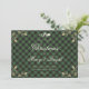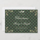 Elegant custom green and gold buffalo plaid photo Christmas cards featuring Christmas bells and holly on a black and green buffalo plaid background on the front and a photo at the back. Easily personalise these vintage-themed photo Christmas cards with your favourite family image, names and the year.