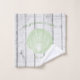 Add an elegant touch to your bath decor with a set of Green Vintage Scallop Shell Bath Towels. Towel design features a vintage scallop shell and custom text for you to personalise with your family name against a wooden background. Additional home decor items available with this design.