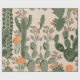 Green vintage succulent cactus and orange flowers seamless pattern. Beach wallpaper. Cream background