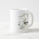 Green w Gold Leaves Monogram Initial 'E' Name Large Coffee Mug