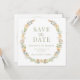 Elegant rustic greenery leaves with warm vanilla floral boho wedding Save the Date photo invitation.