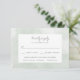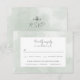 RSVP card with a green spring watercolor background and tulip symbol on the back.