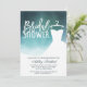 A modern, pretty chic and elegant greenery blue watercolor wash bridal shower party invitation with an elegant wedding white dress .Perfect for a princess bridal shower.