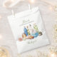 Spa day items including towels, lotions, candles, soaps, cucumber water, and more are displayed on this favour bag to create a relaxing mood for a bachelorette spa party. Makes a perfect way to give favours for a soothing spa day or weekend for the bachelorette party, but can also be edited for a bridal shower, birthday party, or other special event. Available with matching products.