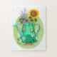 Green Watering Can Cottage and Sunflower Jigsaw Puzzle