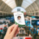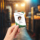 Simple but not plain, green wave design along the bottom edge and up the left side and a little splash of colour in the upper right corner. Add your company name, employee photo, and position to complete the front. If you need a barcode, add it to the back. Don't need a barcode, remove the one that is currently present.